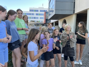 Am vergangenen Dienstag, dem 7.10.2025, bekam das Wittekind-Gymnasium Besuch von der Europa-Abgeordneten Verena Mertens (CDU/EVP). Anwesend waren die Europakurse aus den Jahrgängen neun und zehn sowie die Europakursleiterinnen Frau Stefener und Frau Jeske, die Schulleiterin Frau Höcker-Gaertner und einige weitere Lehrkräfte des Kollegiums, die sich um halb elf im Musikzentrum versammelten. Den Titel als „Botschafterschule des Europäischen Parlaments“ erhält die Schulgemeinschaft des Wittekind-Gymnasiums, da wir uns besonders für die Vermittlung von Europa-Wissen und demokratischen Werten einsetzen. Durch Projekte, kreative Aktionen und Schüleraustausche verbunden mit einem Besuch im Europäischen Parlament wird bei uns das Verständnis für die Europäische Union und Demokratiebildung gestärkt. Wir als junge Menschen werden motiviert, uns aktiv in die Gesellschaft einzubringen. Damit lernen wir einen wichtigen Beitrag zu leisten, um Europa lebendig und greifbar zu machen.