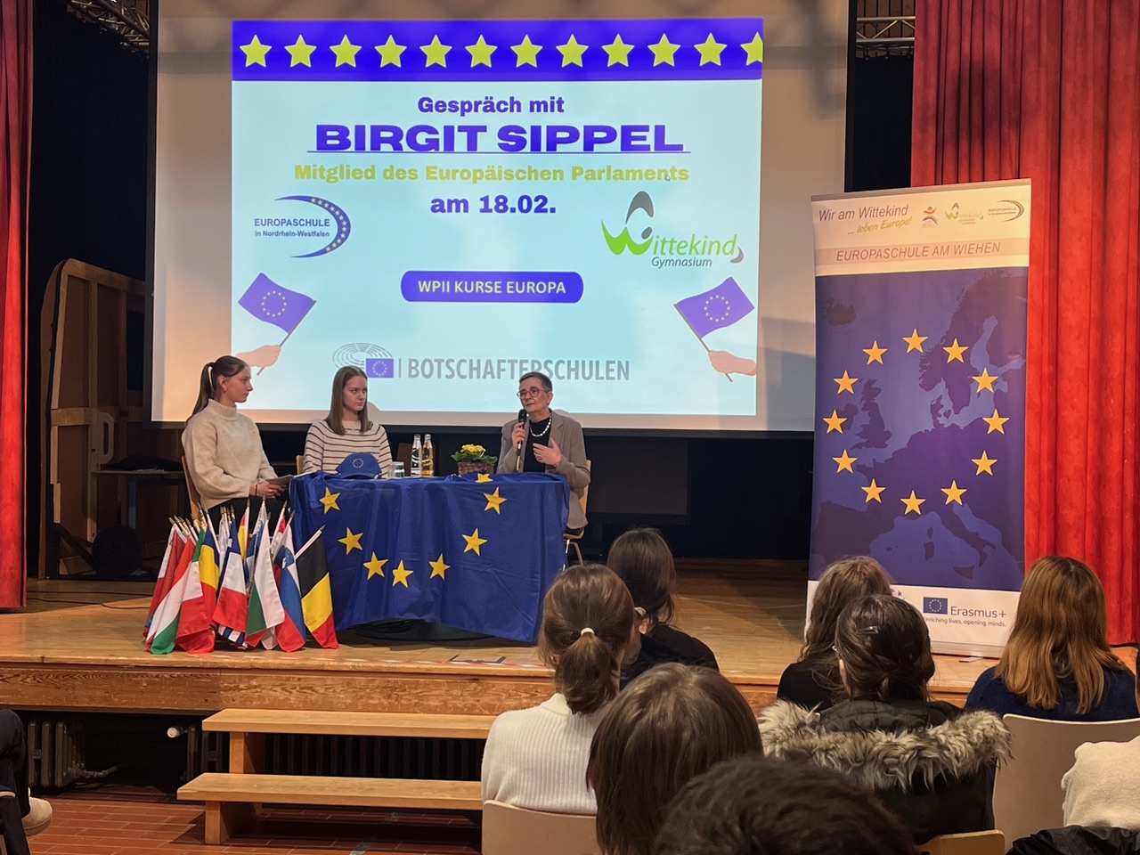 Am 18. Februar 2026 begrüßte das Wittekind-Gymnasium die Europaabgeordnete Birgit Sippel zu einer Gesprächsrunde mit den WP2-Kursen „Europa“ aus den Stufen 9 und 10 sowie dem Erdkunde- und Geschichts-LK aus der Jahrgangsstufe Q1.