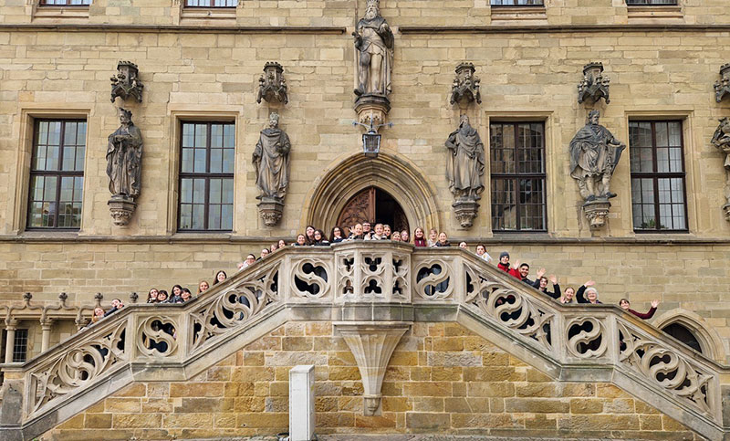 Siebzehn fröhliche italienische Schülerinnen, ein Schüler und zwei Lehrer waren vergangene Woche zu Gast am Wittekind-Gymnasium und haben nach einem typischen deutschen Frühstück die Innenstadt Lübbeckes mit einer Schnitzeljagd erkundet. Zurück in der Schule begannen alle mit der Projektarbeit und recherchierten, wie kleinere und größere Betriebe der Regionen Emilia-Romagna in Italien und Ostwestfalen in Deutschland mit dem Thema Nachhaltigkeit umgehen, welche Konzepte entwickelt wurden und welche Veränderungen diese für ein Unternehmen bedeuten.