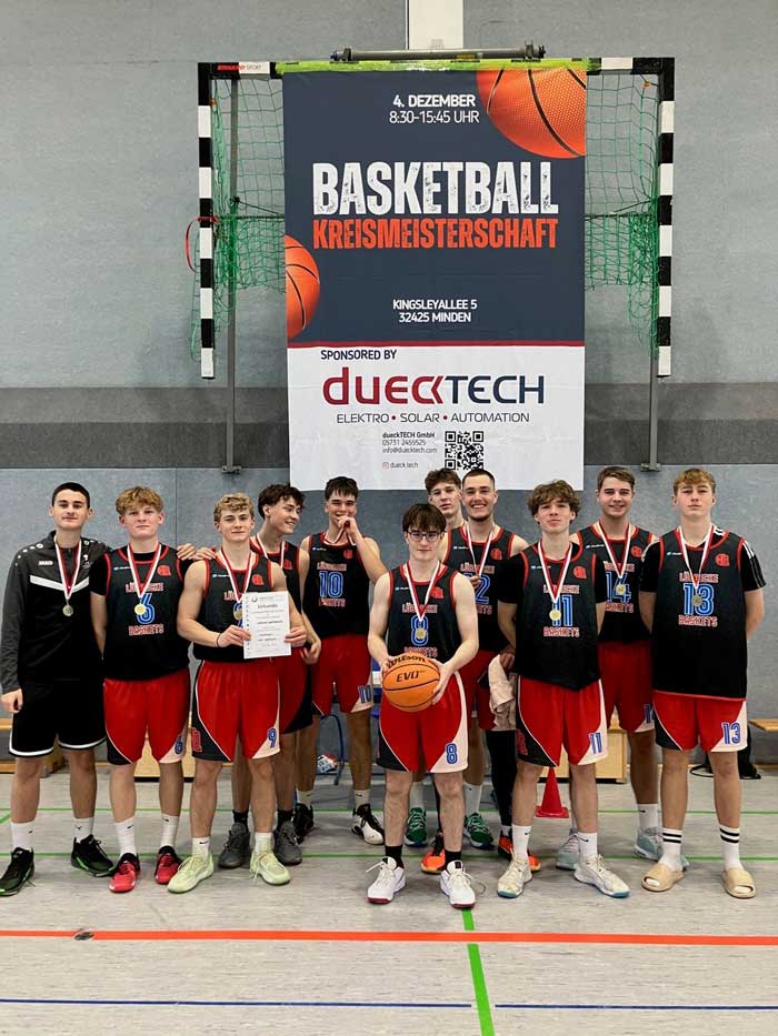 Das WK I Basketballteam des Wittekind-Gymnasiums hat die Kreismeisterschaft 2025 eindrucksvoll für sich entschieden. In vier Spielen mit vier klaren Siegen dominierten unsere Jungen das Turnier von Beginn an und sicherten sich am Ende vollkommen ungefährdet den verdienten Titel. Mit großem Teamgeist, Ausdauer und beeindruckender Spielfreude zeigten sie, wie viel sportliches Potenzial in ihnen steckt.